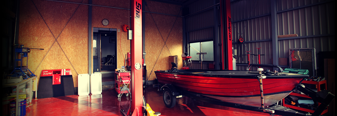 バスフィッシングのレンタルボート・アルミボートで使用するカスタムパーツや、クルマやバイクのワンオフパーツの製作を中心に車検・整備・各種熔接なども行っております。